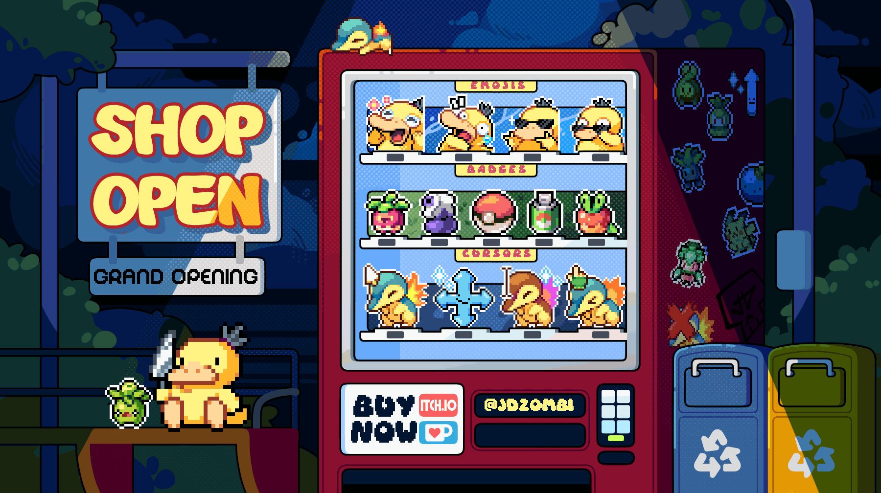Hi! Welcome to my page. I am a pixel artist and game developer who will occasionally upload different asset packs, emotes, badges, cursors, etc. Tysm for stopping by! ๐๐
